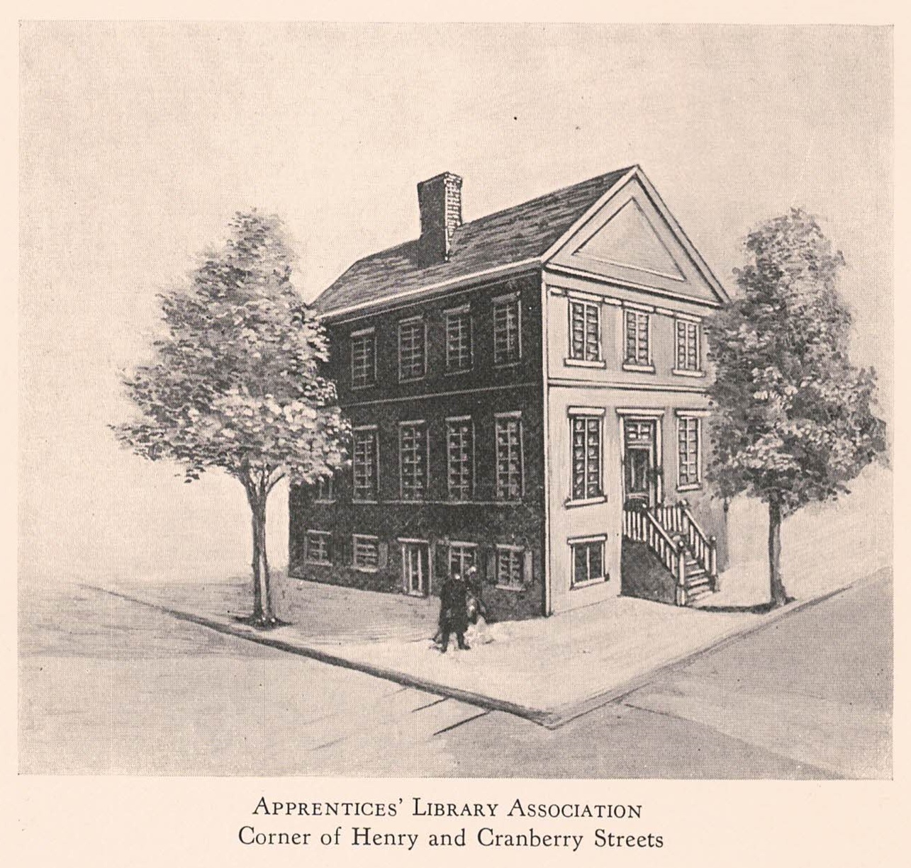 The Apprentices’ Library was Brooklyn’s first free library and public reading room. The library association was incorporated in 1824 by Brooklyn benefactors like Augustus Graham. The founders aimed to provide “mechanics, manufacturers, artisans and others” with books and classes. As the name indicated, there was a focus on apprentices and young people who didn’t otherwise have access to free public education.