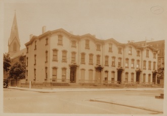 The original Honeymoon Row of five houses, shown in 1922. NYPL