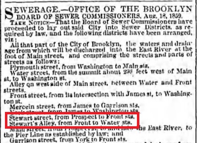 Brooklyn Daily Eagle (Aug. 29, 1859, p. 4), courtesy Brooklyn Public Library. “Board of Sewer Commissioners Notice”