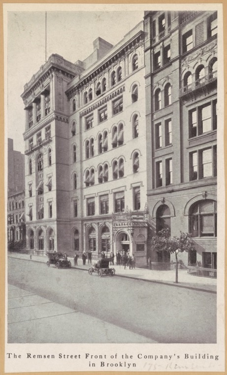 Big commercial buildings continued to go up on Remsen St. Here’s a photo of the Brooklyn City Railroad Building at the northeast corner of Clinton St, built in the early 1900s. The image is Brooklyn’s mid-century demise & renewal in a nutshell—this building came down in the 1930s yet it was still taller than what eventually replaced it on the site today!