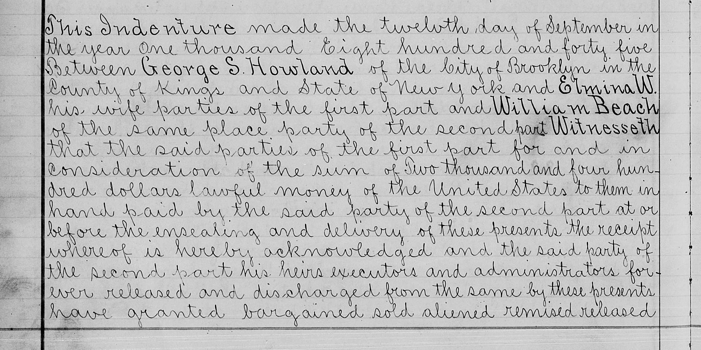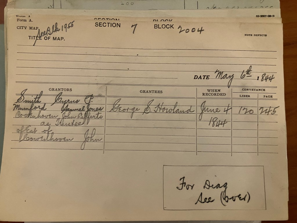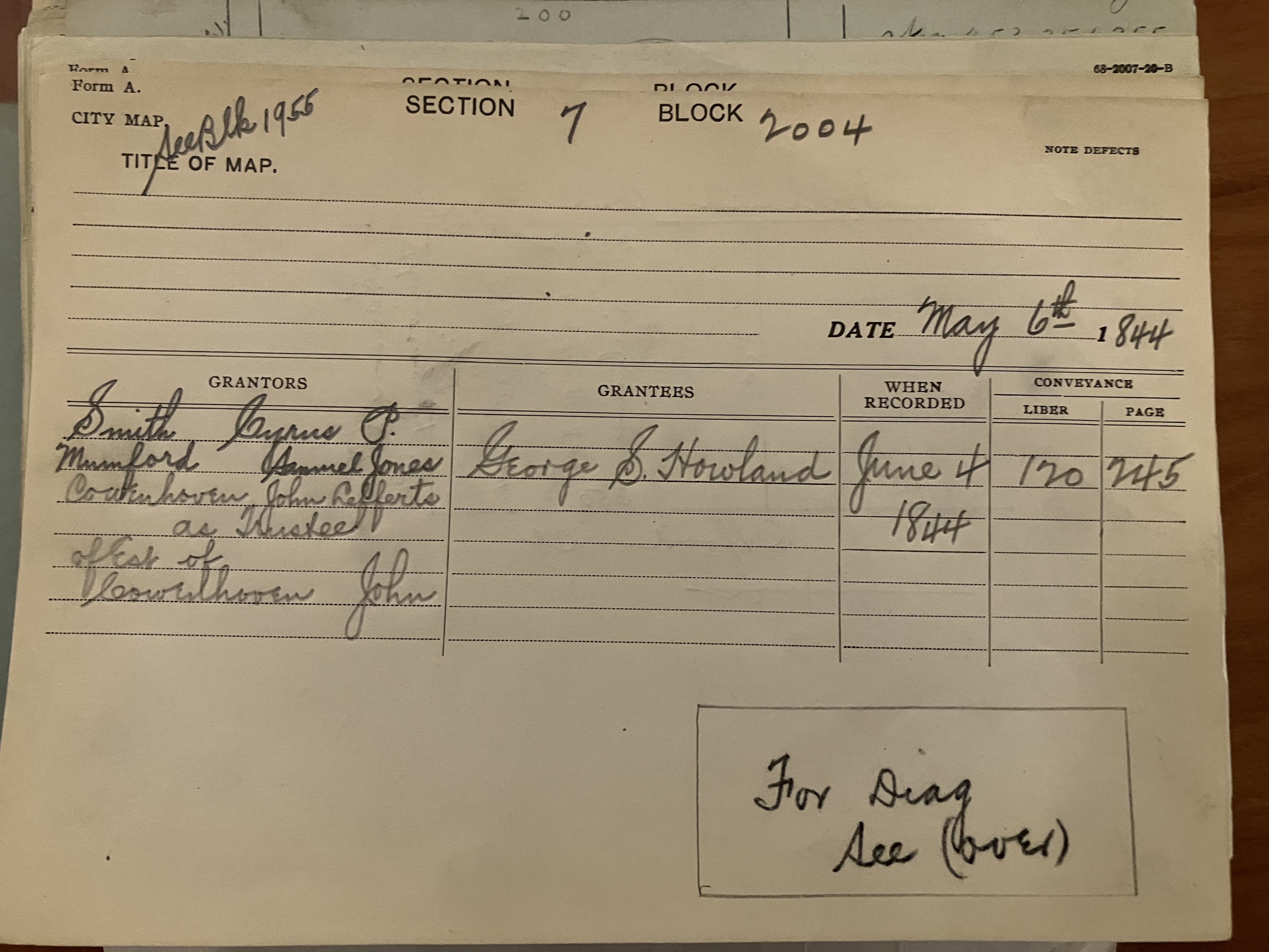 Howland closed on the purchase in May 1844. Over the next several months, Howland split his tract into smaller parcels for resale. But many of the plots he offered were still amply sized for large free-standing villas surrounded by gardens, not single lots for city rowhouses.