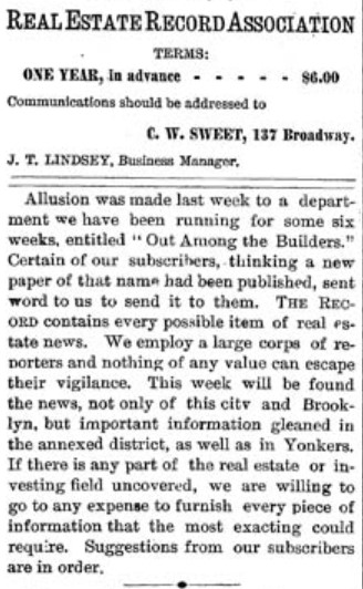 Later, after a lull during the Civil War, construction exploded in a building boom across the cities of New York and Brooklyn. The profession rapidly progressed, and at the same time, the cities established building departments to regulate all the new construction. And crucially for future building historians, a trade press sprung up that reported architect and builder information that the new city departments were collecting.